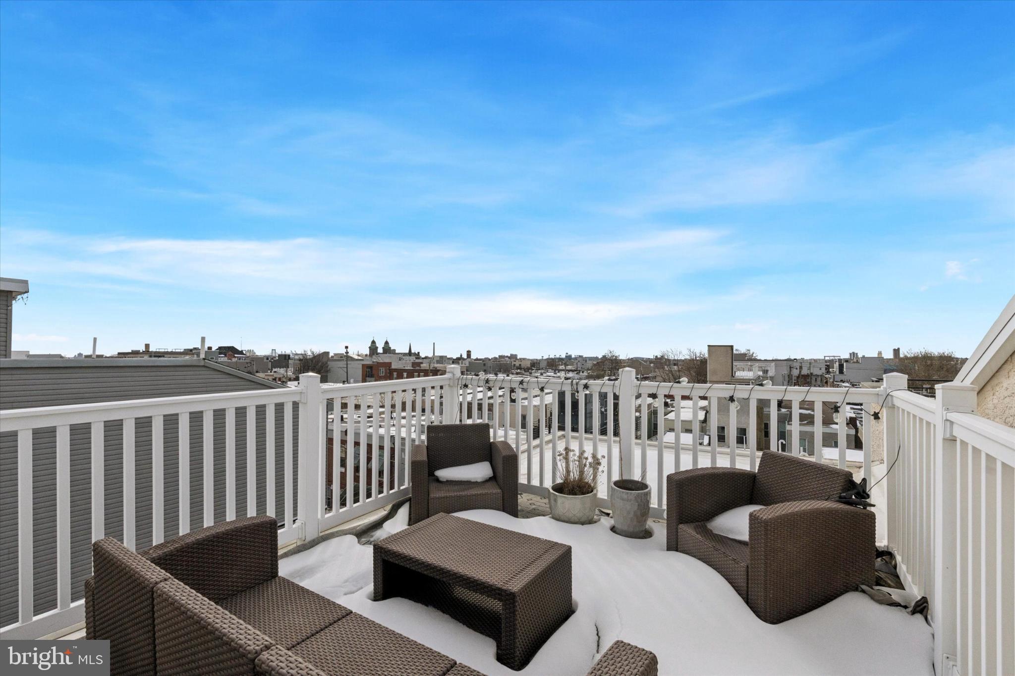 This spacious three-story home features 3 bedrooms, 2 full bathrooms, 1 half bath, a finished basement, and a private rooftop deck with stunning Center City views. From the moment you step inside, you're greeted by rich hardwood floors, elegant wainscoting, crown molding, recessed lighting, and sleek contemporary metal railings that create a clean yet sophisticated aesthetic.
