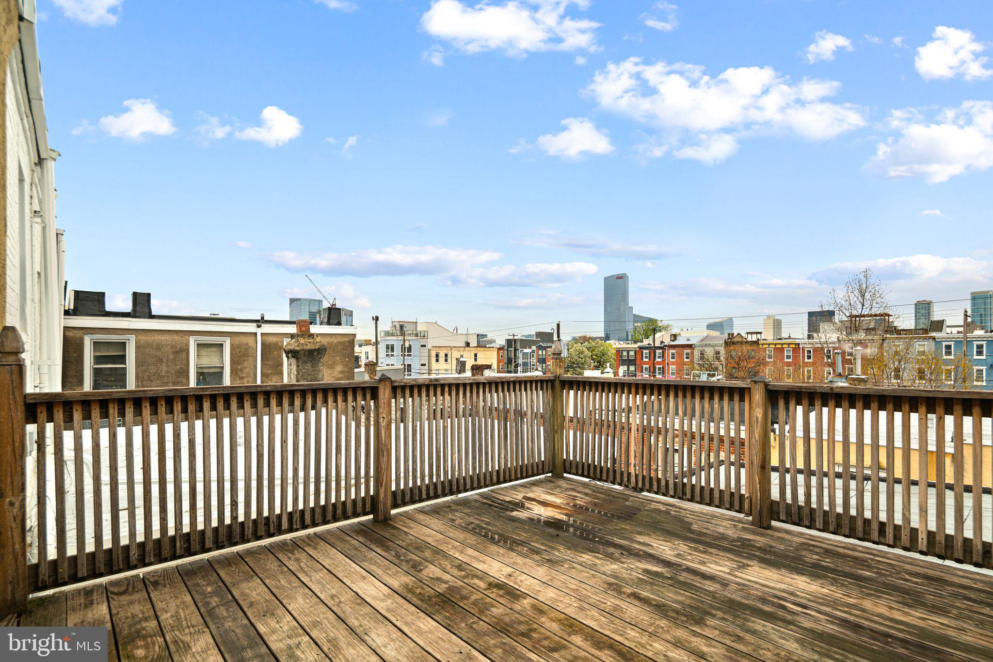 The spacious bedroom is a peaceful retreat, complete with ample closet space and a large window that overlooks the beautiful street below. The bathroom boasts stylish finishes, including contemporary tile work and a full-size tub for a relaxing soak. The home includes a large roof deck with incredible views of the city skyline.